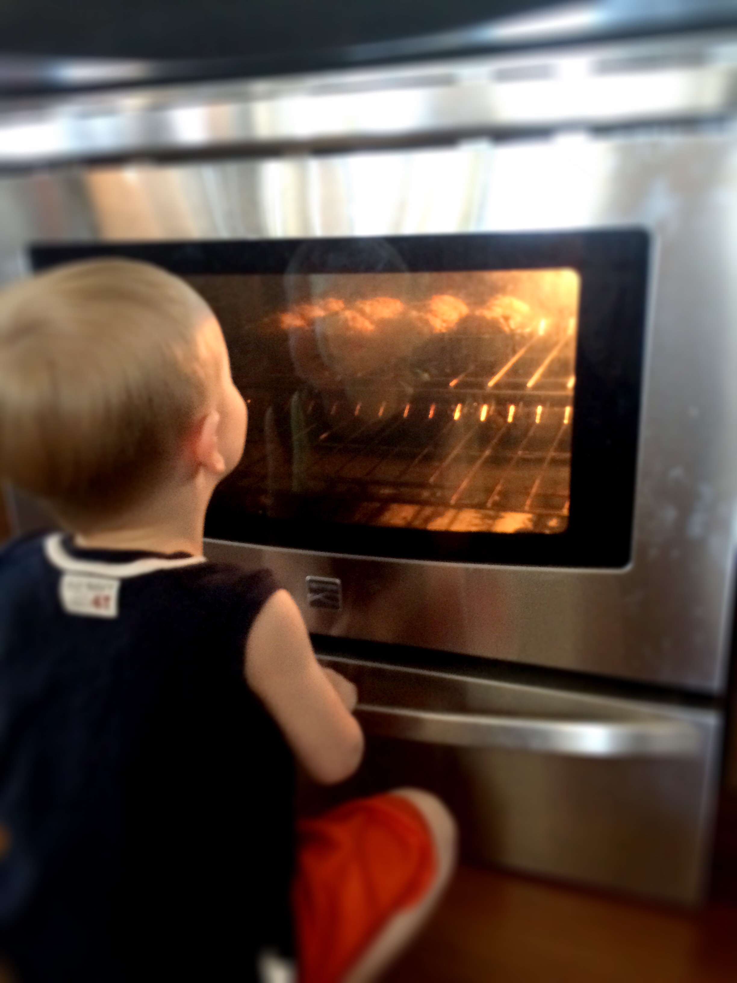 Focus on the sweet little 4 year old waiting for his muffin….not the fingerprints all over the stove.