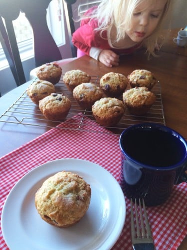 Patiently waiting for mom to take a picture – dirty face and bed head not required to enjoy these muffins. (ha)