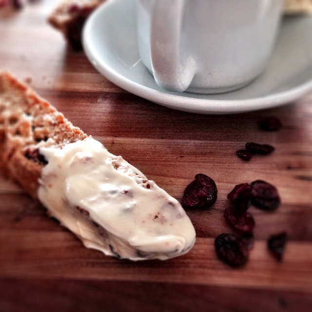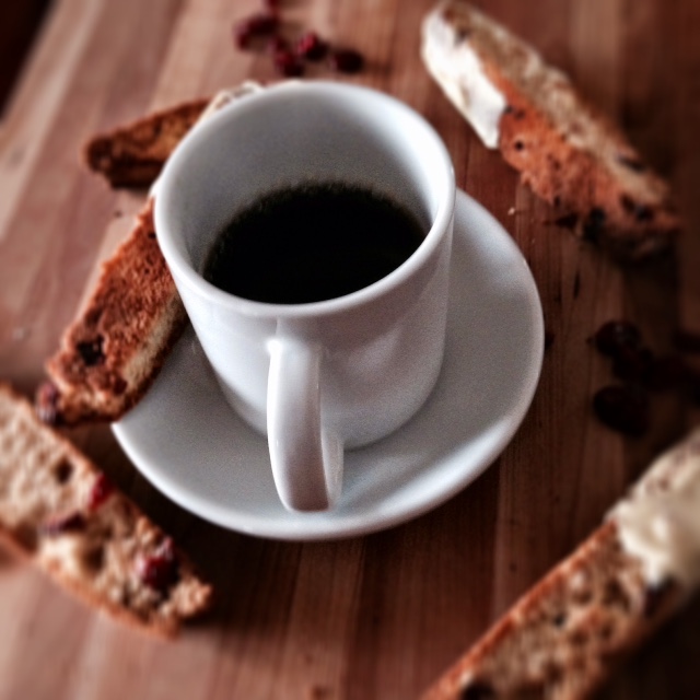 This was my first attempt at making biscotti. It involves a few extra steps, but well worth it. This requires baking twice, and then dipping in white chocolate. Ahhh! Great for these snowy, cold wintery mornings!