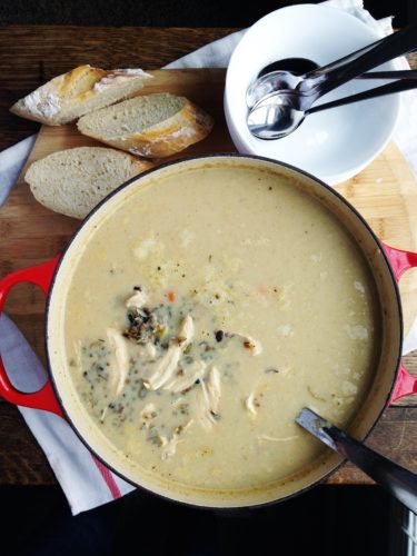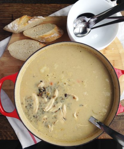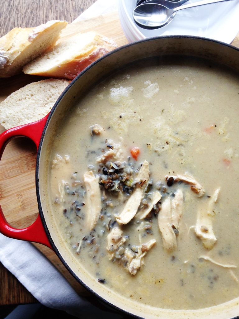 Is it too early in the season to be making soup? I really hope I’m not breaking any culinary rules here, but today I made this creamy chicken and wild rice soup, and it was divine… comforting… filling… just right.