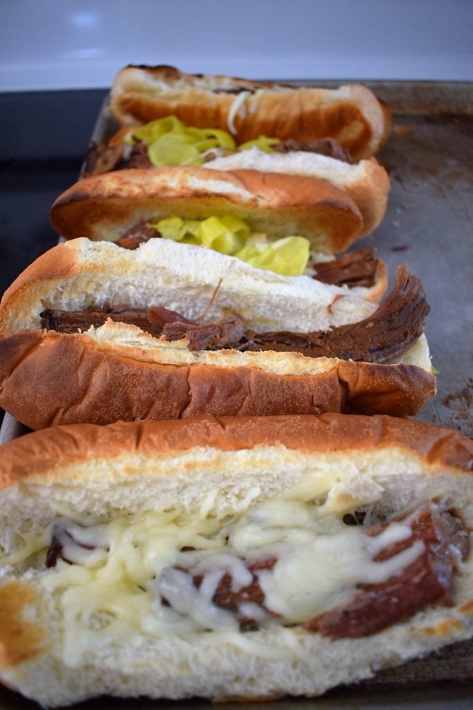- Makes sandwiches with the hoagie buns, topping with additional pepperoncinis and cheese, if desired. Pop under the broiler for about 3 minutes if you'd like a toasty, melty sandwich.