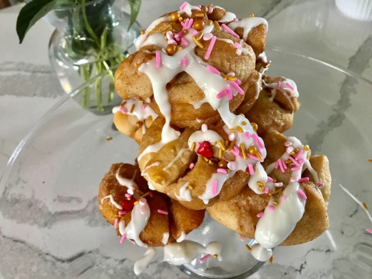 Then after church, I pulled the beef using two forks, and piled it in some bakery buns. I had some leftover brat buns, which is a great size for our kids, but of course hoagies work well, too. Some of our family members like mozzarella and more pepperonis layered on top, and then to have the sandwich toasted for a few minutes under the broiler. Some like to leave it plain and dunk it in the delicious broth. Some like to do all of the above… you get the picture! It’s a very versatile sandwich.