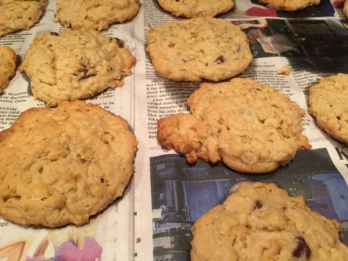 I got a recipe very similar to this from the older lady that lived across the road when my kids were little. It was called Catch-all Cookies. About the only difference is we use 1/2 chocolate chips and 1/2 butterscotch chips. She used crushed cornflakes instead of Rice Krispies. I substituted Rice Krispies when I didn’t have any cornflakes in the house.