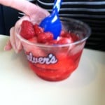 Have you ever had lemon ice at Culver’s? It’s terrific plain and really terrific with fresh raspberries. Thought I’d give it a whirl and stir some up for this holiday along with some homemade ice cream. The lemon ice was a hit! Was it as good as Culver’s? You decide.