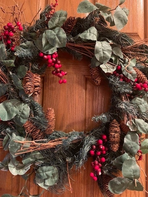 I have been searching for a way to hang a wreath on our front door without permanently altering the door. There are several options out there but with the fluctuating Midwest weather, I have yet to find a long term solution. Just recently I mentioned it to a friend. “It’s simple” she said, and indeed it was. All you need is a 3M hanging strip, the trick is mounting it upside down on the interior of your house. Done! A way to hang your wreath that will not be effected by temperature and should not damage your doors in any way.