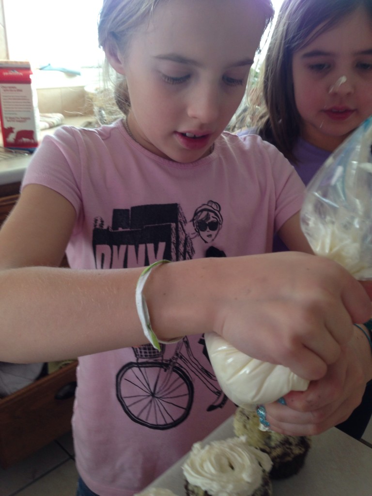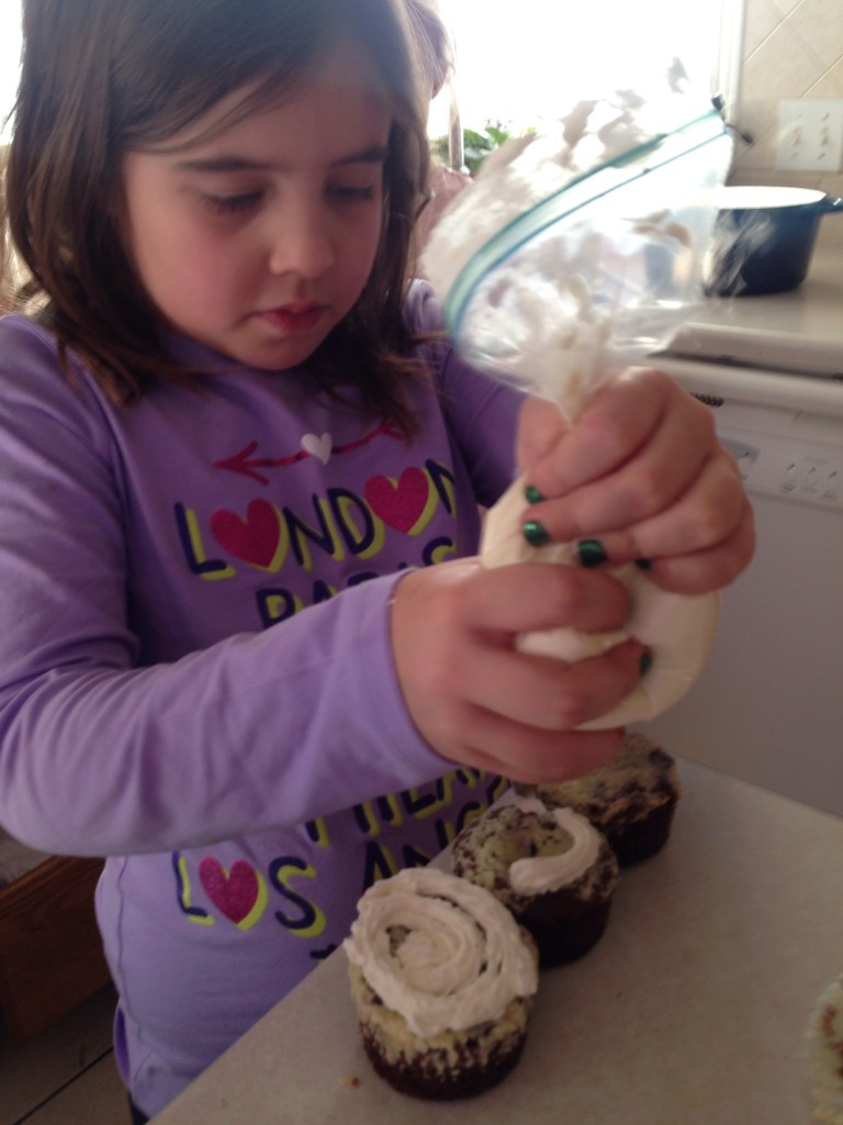 I love trying new recipes with my girls. It’s so fun to make some new recipes and memories together. (ps- We didn’t have a decorator bag, but a zip-lock bag worked just fine.)
