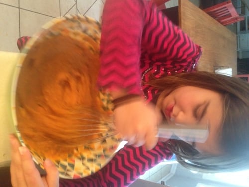 - Beat on low speed remaining milk, pumpkin, pudding and spices for about 2 minutes until mixture is thick.