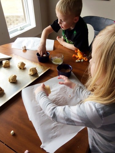 While the oven is preheating gather up the kiddos and read John 19. Hand each kiddo a marshmallow and explain how it represents Jesus.