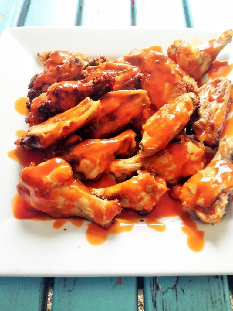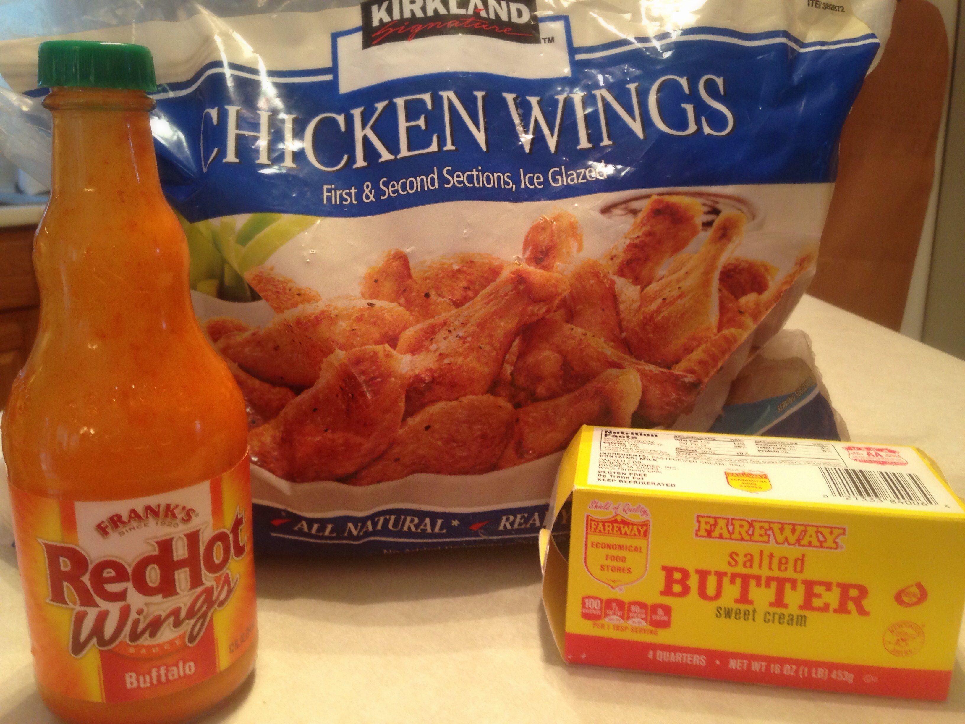 I remembered that I had a big bag of chicken wings in the freezer and the other two ingredients to make Buffalo wings.
