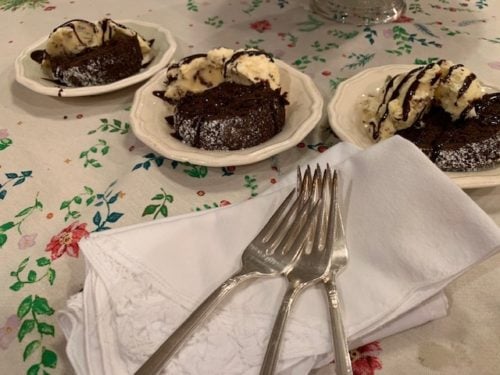 The family agrees that rich, decadent chocolate cake is much better in this pan than ice. I hope you agree.