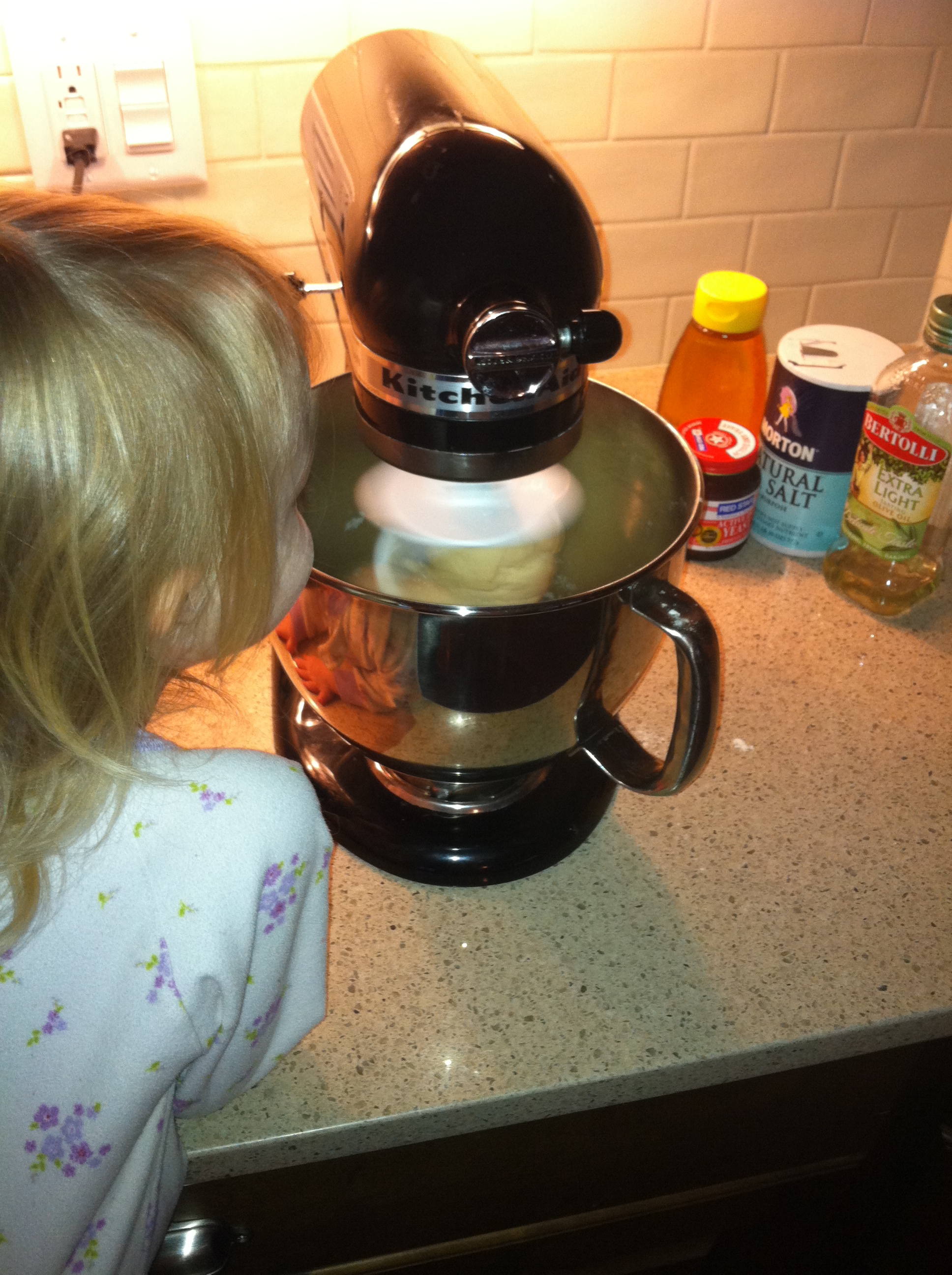 - Knead on medium speed for 6 minutes (set your timer and walk away - or watch as my kiddos do)