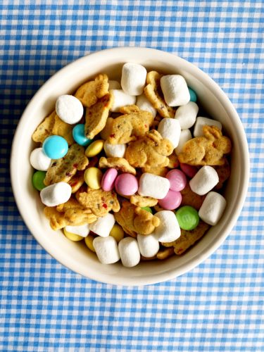 In an effort to keep things as normal as possible we have continued on with some of our favorite Easter traditions, such as making Cinnamon Sugar Resurrection Rolls together and enjoying this fun bunny snack mix.