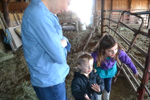 While in the barn, a new baby calf came! Right then and there! While my kids have seen a lot of new calves, they had never seen one actually enter the world. Very exciting! Very surprising! Very educational!