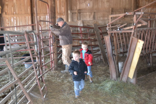 my kids got to go with my dad (Grandpa) to “check the baby calves.” This means that he drives through the pasture to see if any new calves have been born, and he also checks on cows who have been placed in the barn because they were having some difficulty in their delivery. My dad and brothers go multiple times throughout the day and night to make sure that the cows and calves are safe.