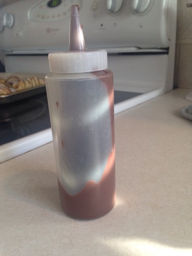 - Using a squirt bottle or a spoon, drizzle the melted chocolate over croissants.