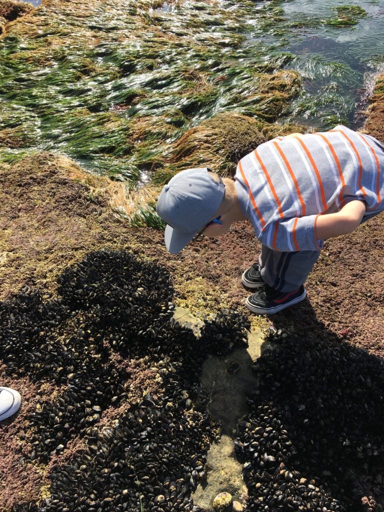 Just down the path from the cove is Shell Beach. This beach is named for the thousands of these shells found all over the beach. The kids and I were surprised, though, that the shells are firmly attached to the ground! Why? How? We have some research to do!