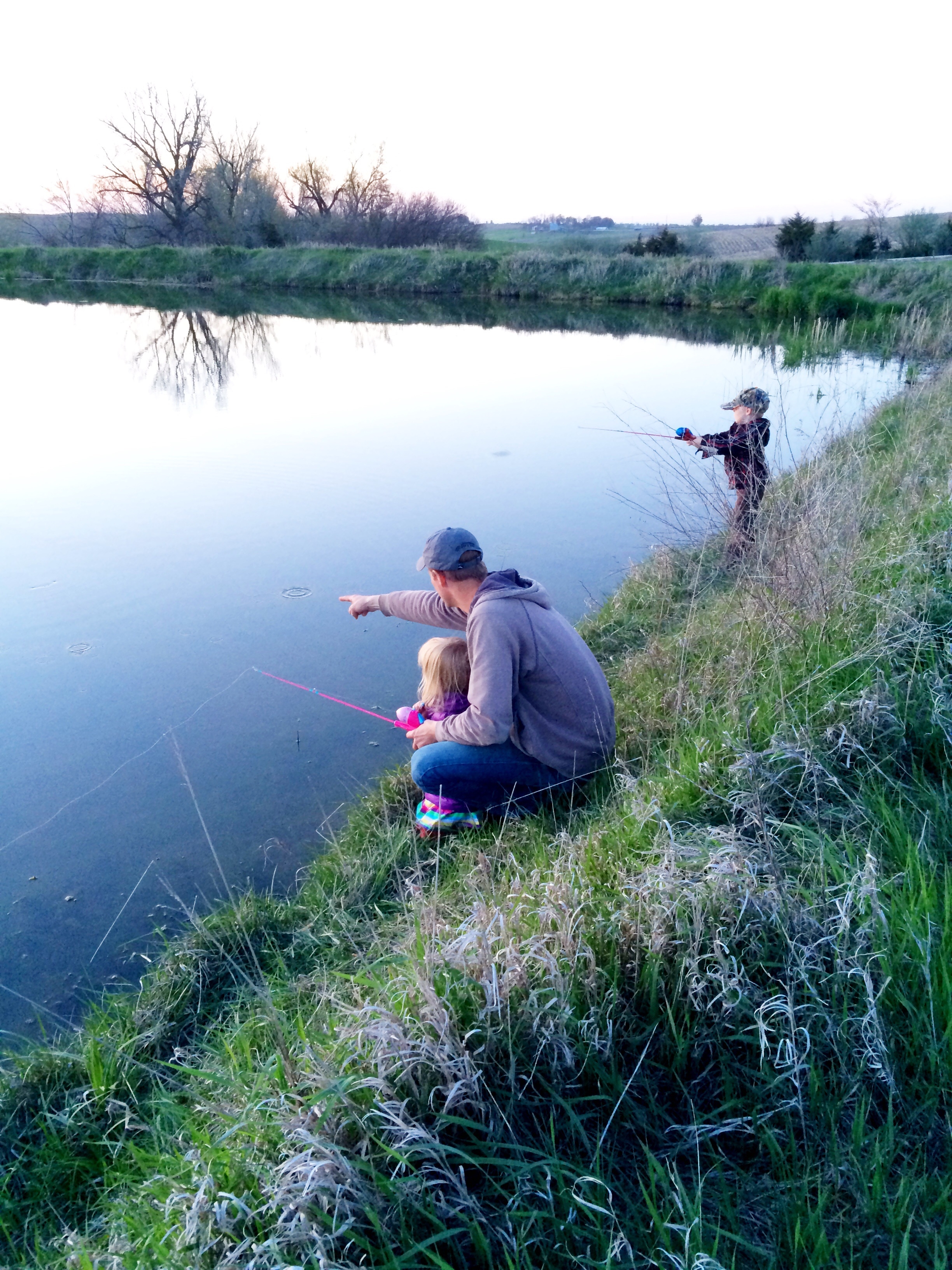The men have been busy with planting and spring work. Trying to get as much done when the weather is optimal and the ground is dry. Ever since our rainy day trip to Bass Pro Shops a few weeks ago (my kids think it is the best “vacation” ever. ha!), where we picked up some new fishing poles the kiddos have been begging to go fishing. One evening a few nights ago, Daddy surprised us and came home early to take us out to the pond. The kiddos were ecstatic! We loaded up the Spiderman and Barbie fishing poles, although not looking so new due to all the indoor practice they were getting, and headed out. It was such a beautiful evening, we all had a great time! We all love being outdoors, but even more than that, we love spending time as a family. In reality, it was not about the fishing, it was about the time spent together.