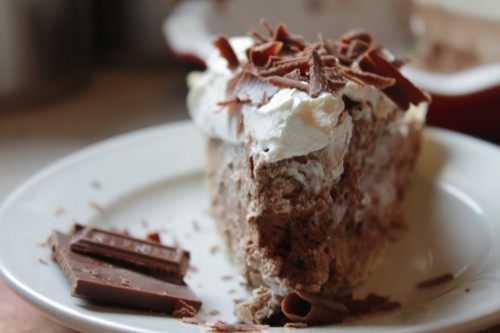 Chocolate…fluffy…creaminess…dessert…folded in whipped topping. What’s not to love about that? The first time I had this pie, I was astonished that it was homemade! It was not from Baker’s Square – although it is very similar to their French Silk pie -and it might be even better.