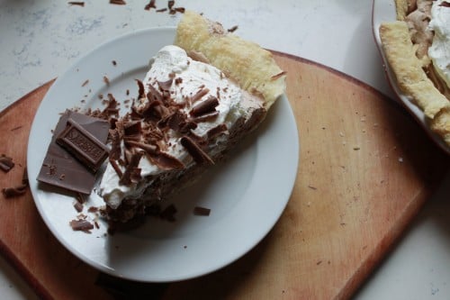 I used a frozen pie crust – but if you feel overly ambitious – try our homemade pie crust. This chocolate dessert is absolutely decadent and delicious, and the perfect cure for a chocolate craving. 🙂