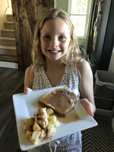 She wanted to make the French Toast all on her own – which she did – other than we agreed that I would handle the homemade syrup part. She was elated crack the eggs and to flip the toast when it was ready. While she was carefully watching, I was stirring the syrup until it boiled. Alas, our brunch was ready.