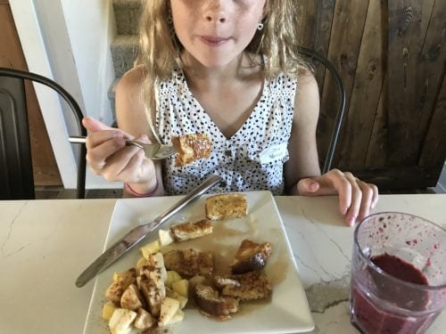 Several Sundays ago, my daughter was begging me for making brunch together. We had set forth our menu of scrambled eggs, sausage, french toast, smoothie, and fresh fruit. As soon as we got home from church, we got cookin’ in the kitchen.