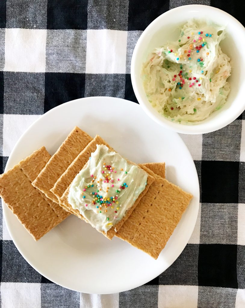 When I think of appetizers I rarely think of sweet…however, this Funfetti Cake Batter Dip has me rethinking my approach. My sister brought this appetizer over and the kids and myself were scarfing it down. Just the right amount of sweet and fun! I am thinking this may become a birthday party regular right along with this popular Popcorn Munch. Simple to throw together and a “no bake” option you can make ahead of time and pull out when the party starts. Serve with scooby doo snacks, animal crackers or for your more sophisticated crowd, graham crackers! 😉 Load on the sprinkles to make it extra colorful and enjoy!