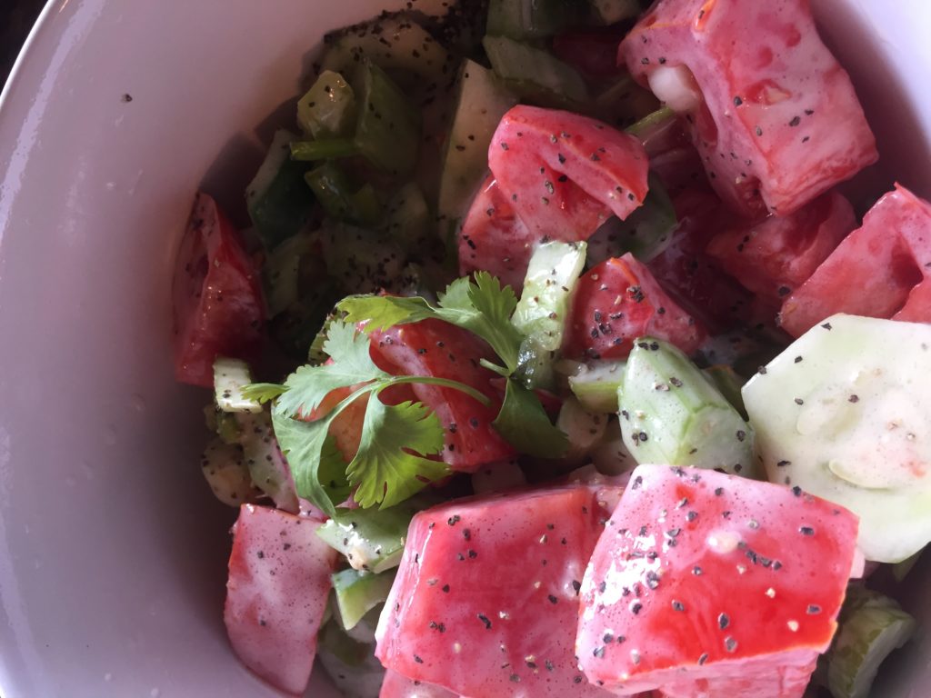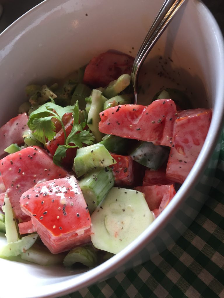 - In a large bowl, drop in all ingredients. Give it a quick stir and serve it up or stick in refrigerator and let it marinate awhile to mix all the flavors. You can make this ahead of time, even a day ahead.