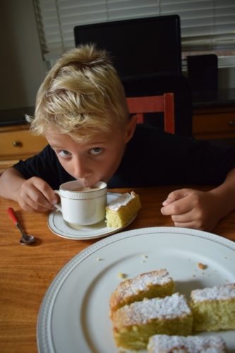 Yesterday, Laurie shared a few of her company’s products with me, including the Kuwl All Purpose Baking Flour, and she also shared a treasured family recipe, sponge biscotti. So today, the kids and I had fun making the biscotti. I have the be honest; I’ve not had the best results using gluten free flour before. Baked goods that we’ve tried have had a course texture and a funny flavor. But as this biscotti was baking, the kitchen smelled delicious and my hopes were rising. We pulled the dish out of the oven, waited for it to cool, and then dusted the top with powdered sugar. And then the moment of truth… would this be as good as biscotti made with regular flour? YES! Absolutely! The end result was a moist, flavorful, excellent, delicious treat that had a lovely light texture. And I loved that the dunked biscotti tasted a lot like tiramisu, one of my favorite desserts.