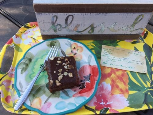 Back in the ’50’s and and early 60’s my mother’s kitchen never stocked cake or brownie mixes. These desserts were always made from scratch. As I perused over my mom’s worn and battered recipe cards, I studied this one.
