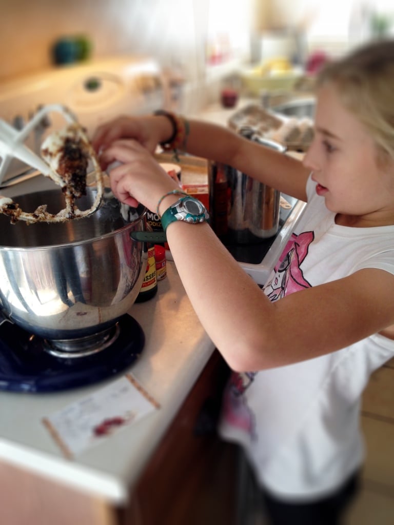 While we measure and mix, we share a few favorite stories about Grandma. We talk about how she played with me, and read books to me, and took me on walks on the old dirt road. We talk about how loving and kind she was.