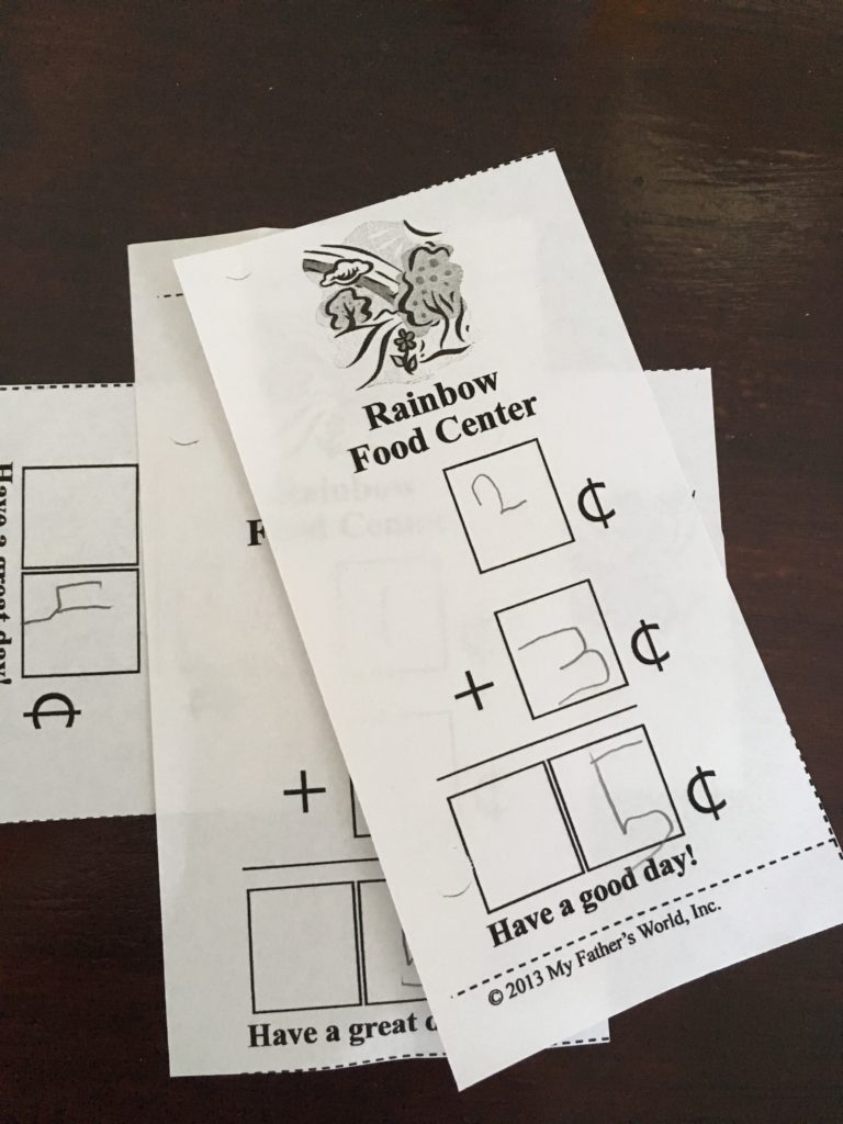 Our curriculum supplies these receipts, but you could easily make something similar at your home.