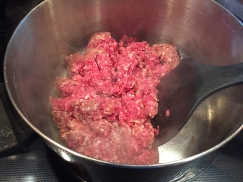 Browning the beef.