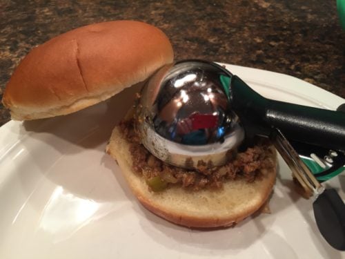 I love using this ice cream scoop to scoop up the maidrite sandwiches.