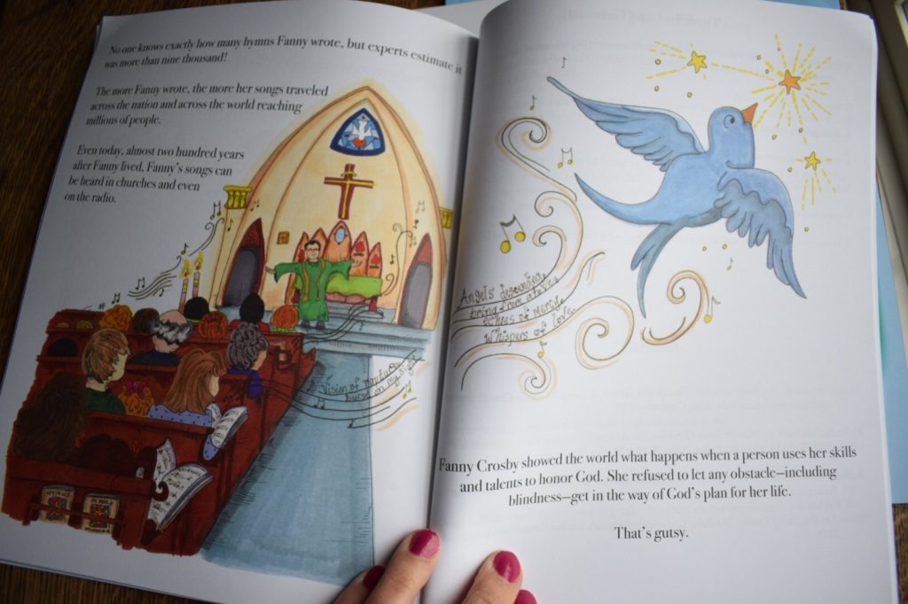 These books are illustrated biographies of strong women who changed the world by being brave (GUTSY!) enough to obey God. The first three books are about Gladys Aylward (the missionary to China), Sisters, Corrie & Betsie ten Boom (Christians who hid Jews in their home during the Holocaust), and Fanny Crosby (the blind writer of thousands of hymns). The stories are unbelievable; my energetic kiddos quietly listen to the entire books. And they are illustrated in a whimsical, lovely way that really captures my kids’ attention.