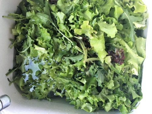 On the other hand, I went down to the garden and discovered I had lettuce and lettuce and more lettuce. What on earth am I going to do with all of this lettuce? I guess we’ll be eating lettuce for the summer, and I’m okay with that! So I made this salad. It is super simple to make, and quite refreshing for a summer meal.