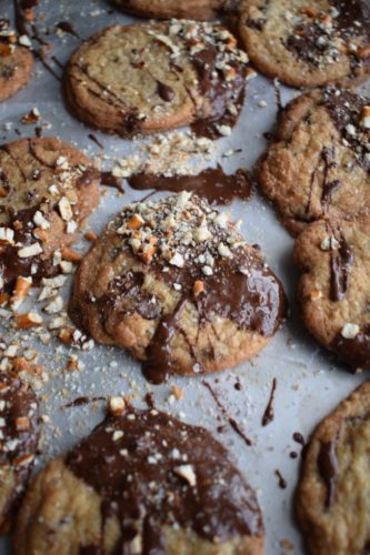 Sea Salt and Pretzel Dipped Chocolate Chip Cookies