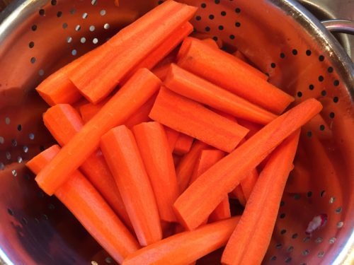 So, early this morning as the sun was coming up, Mr. Farmer said he’d run and chore and he’d be back. I peeked into the veggie draw and have to say not one kind of vegetable was ready to pack. Pulling the drawer out, I threw the contents in the sink, washed out the drawer and rinsed off each kind of vegetables in the colander. And, so….I peeled, chopped and sliced while I was making the rest of his lunch. Now I’m prepared for the rest of the week, whether he pops in for a minute or I have time. The veggies are cleaned and ready for the lunch bucket and for the rest of us to grab a healthy snack or ad to our meal.