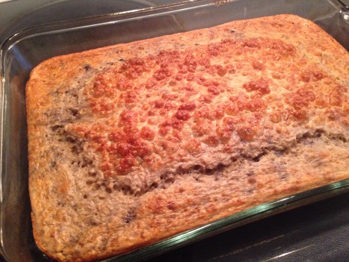 It’s really more of a custard than a cake. I used 1/3 of canned pumpkin puree, and added pumpkin pie spice for flavoring , and sprinkled crushed walnuts on top. Also, no Stevia, instead about 2 tablespoons of sugar. Very tasty! The blueberry version is good too. Both are nice breakfast treats and go well with coffee.