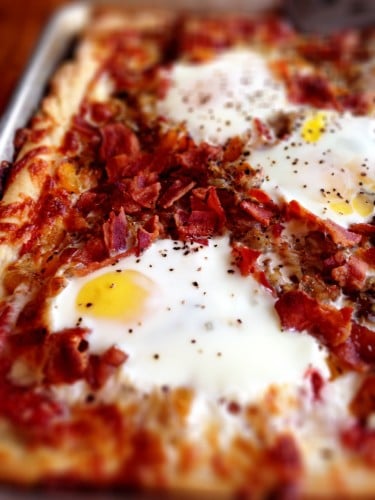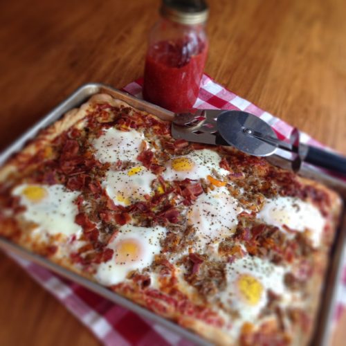 Hearty breakfast pizza: savory, cheesy, filling…. and well, brunchy.
