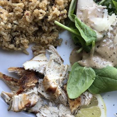 Since we love the outdoors, I gladly utilize the grill as much as possible. Not only because it makes meals so simple, but also because they taste great! Because grilling and marinades just go together, they make life so easy – and they can be done ahead of time. Voila! This flavorful Herbed Lemon Chicken is just that – an easy marinade – then add grains (or carbs – baked potato, warm baguette), and a fresh salad – and dinner is ready. Enjoy!