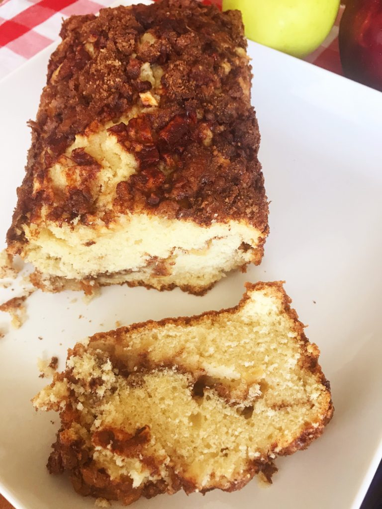 This bread is a perfect fall treat. The smell of the apples and cinnamon baking fills the house, and the bread tastes amazing. (I prefer mine warm right out of the oven). Its got a little cinnamon sugar crunch on the top and the middle is super moist, thanks to the diced apples layered inside.
