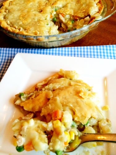- Cut slits into top of pot pie crust and cover edges of crust with foil.
