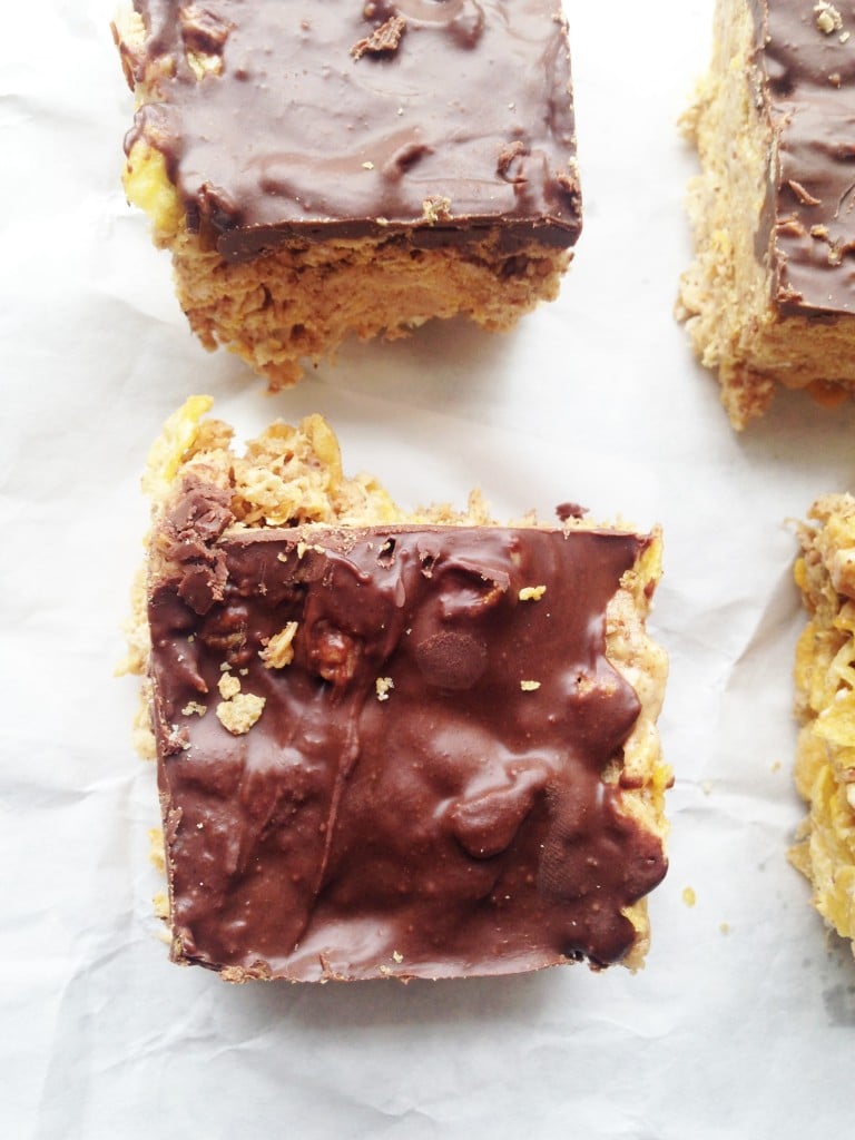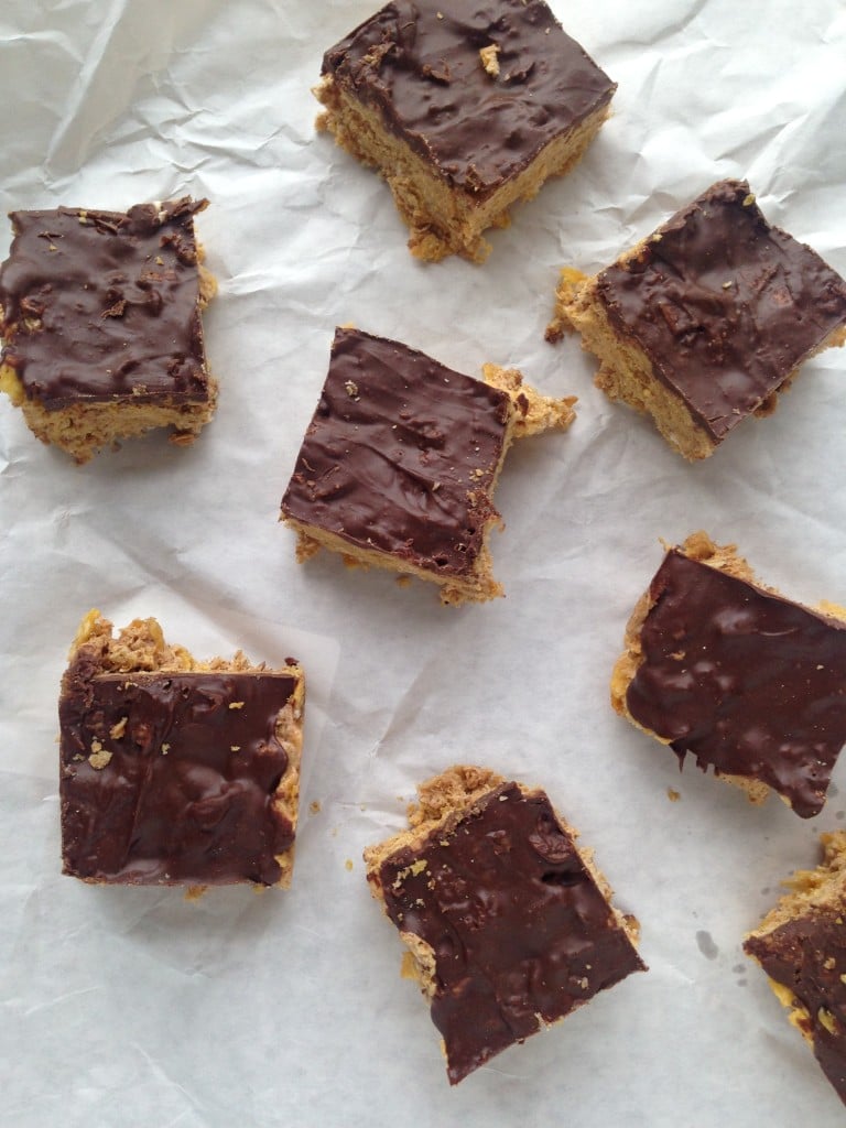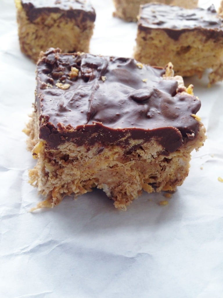 I just made these. They were super quick and mixed together great! ~ unlike rice cereal that only sticks to my spoon. The combo of peanut butter, chocolate and the cinnamon in the ceral was the most wonderful smell. I may eat the whole pan. Oh…you have to make a double batch so there is enough to eat on the sly.