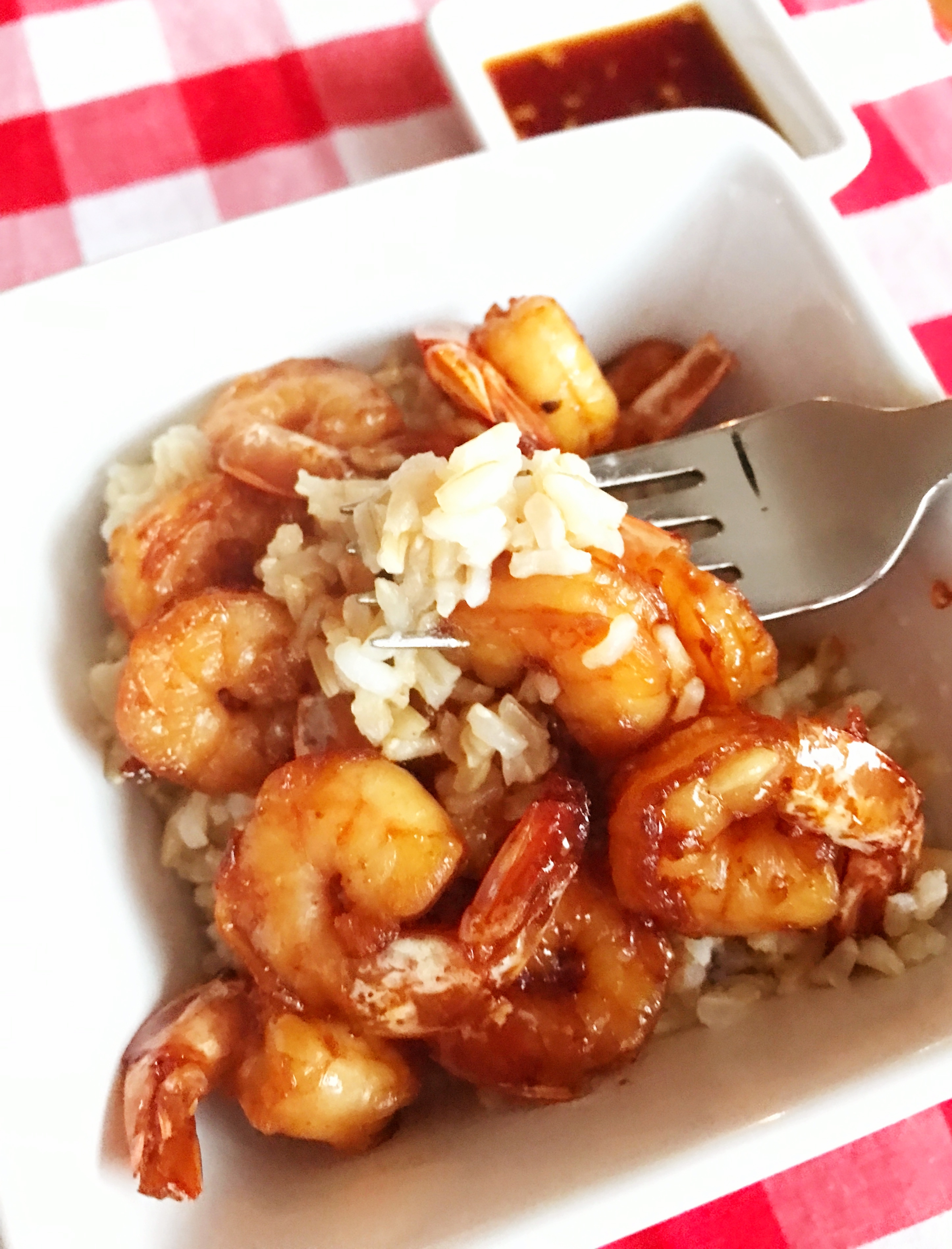 This Honey Garlic Shrimp is a tasty flavor combo that you can easily whip up any night of the week. Serve it over some brown rice and enjoy a simple and healthy meal. The sauce is what makes this dish stand out…the honey, garlic and soy combo is delish! I have even been known to serve the sauce over some stir fry veggies and rice. Hey, when you find something you like, you might as well enjoy it! 😉