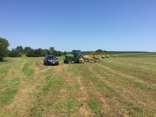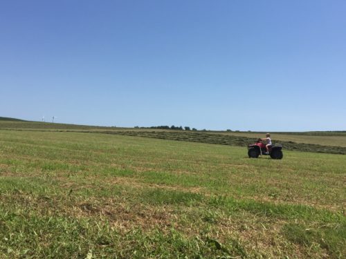 Ava took a quick 4-wheeler ride to cool off a bit. She loves driving this machine. She’s checking out the windrows of hay close beside her.