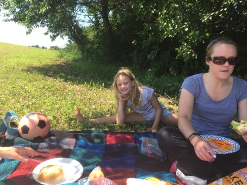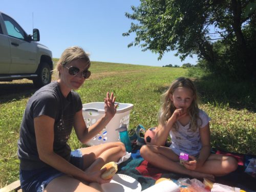 When we arrived, Joe and Jack had a spot all picked out for us with a little bit of shade. The sun was straight up so it was a little bit of a task to find shade, but we made it work. Molly and Ava followed us into the field, then here came Mr. Farmer. You’d think we were invited to The Ritz, the way everyone had a big smile on their faces and a little spring in their step. We were taking time out for each other and it made us feel special…..every one of us.