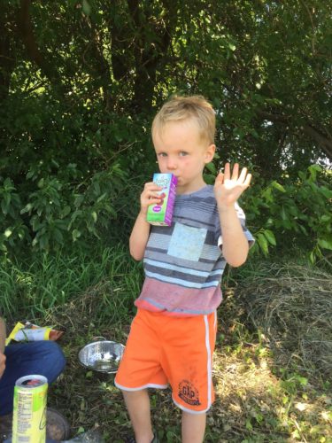 With smudges on Jack’s little face, he waves good-bye. The Juicy-Juice hit the spot for him on this hot day!