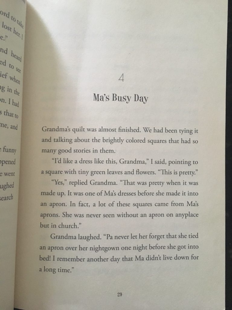 Arleta Richardon carries the reader away to another time and place by retelling the stories her grandmother told her. Grandma had grown up on a farm in Michigan in the 1800s, and while she tried to be a good girl, she often found herself getting into scrapes and mischief with her siblings and friends. I think that I enjoy this book so much because it kind of reminds me of some of the stories that my grandma told me about her rural childhood. And of course there are stories about aprons, which are some of my favorite things. 😉