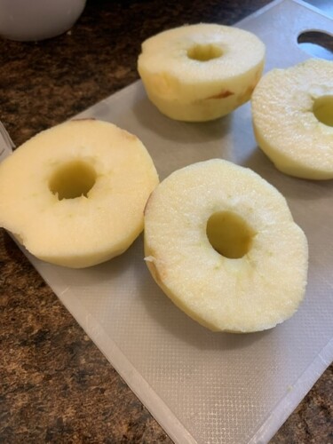 Peeled and cored them. (I love this Pampered Chef corer.)