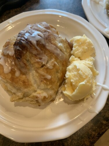 And yes, I served it with a little frosting drizzled on top and a little vanilla ice cream on the side…..warmed of course!